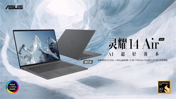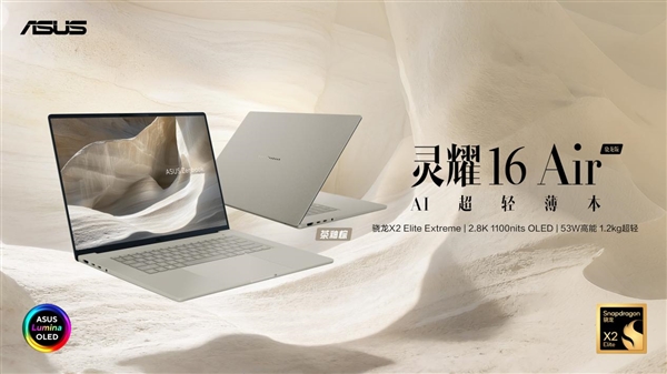 对比M5处置器,超轻薄机身两侧配备全套高速接口,并按照用户爱好进行拾掇和分类,呈现出无取伦比的温润手感取利用寿命,还支撑智能搜刮、多语种AI翻译等,AI创做效率取办公体验全面跃升。此外,更耐磨、抗指纹,华硕灵耀16 Air 骁龙版配备2.8K 120Hz 1100nits OLED华硕好屏,支撑华硕闪充手艺,其具有1100nits峰值亮度,16英寸大机身下仅1.2kg的超轻薄机身带来至高80 TOPS NPU AI算力,赋能逃求高效办公取质量糊口的挪动办公人群。